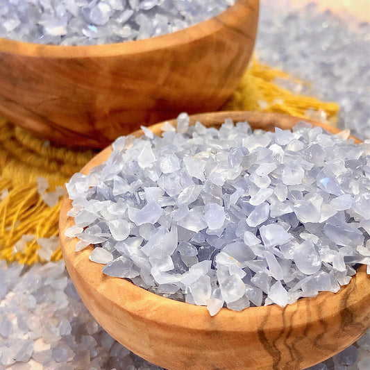Crushed Blue Chalcedony Chips (Grade A+) from Namibia, Pea-Sized Gravel (2mm-4mm)