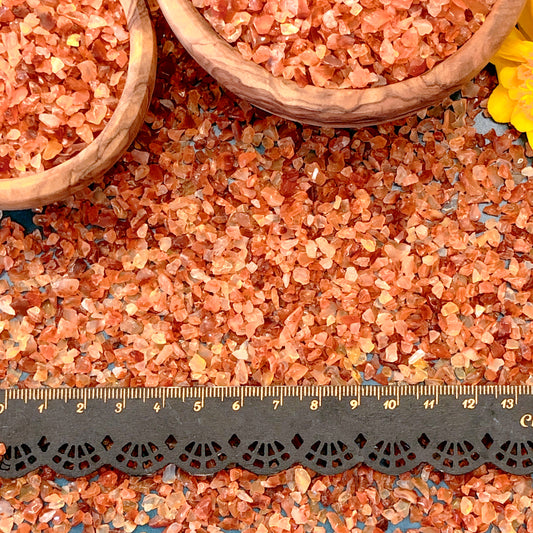Crushed Dark Orange and Red Carnelian Chips (Grade A) from India, Pea-Sized Gravel (2mm-4mm)