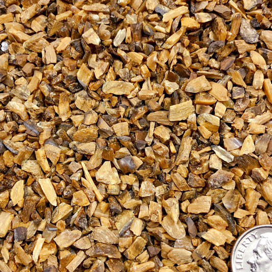 Crushed Gold Tiger's Eye Chips from South Africa, Pea-Sized Gravel (2mm-4mm)