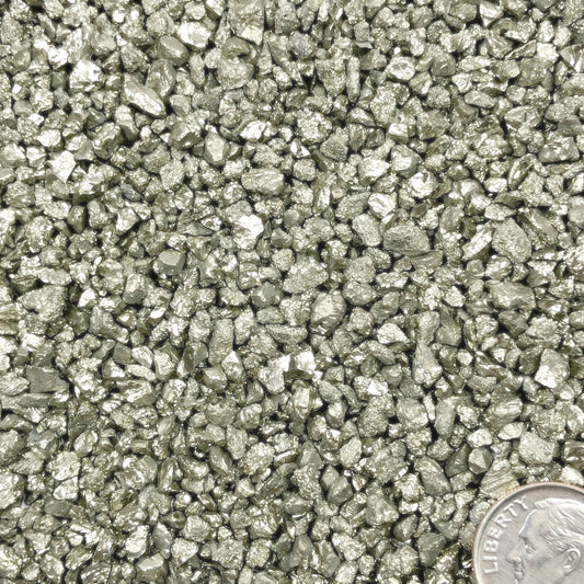 Crushed Silvery-Gold Cocada Pyrite Chips (Grade A) from Peru, Pea-Sized Gravel (2mm-4mm)