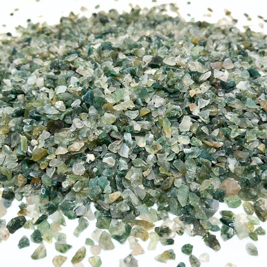 *CLOSEOUT* Crushed Moss Agate Chips from India, Pea-Sized Gravel (2mm-4mm) for Inlay, Resin Art, Orgonites, Bulk Material
