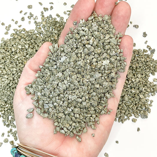 *CLOSEOUT* Cocada Pyrite Chips from Peru, Pea-Sized Gravel (2mm-4mm) for Resin Art, Embellishments or Orgone Pyramids, Bulk Material