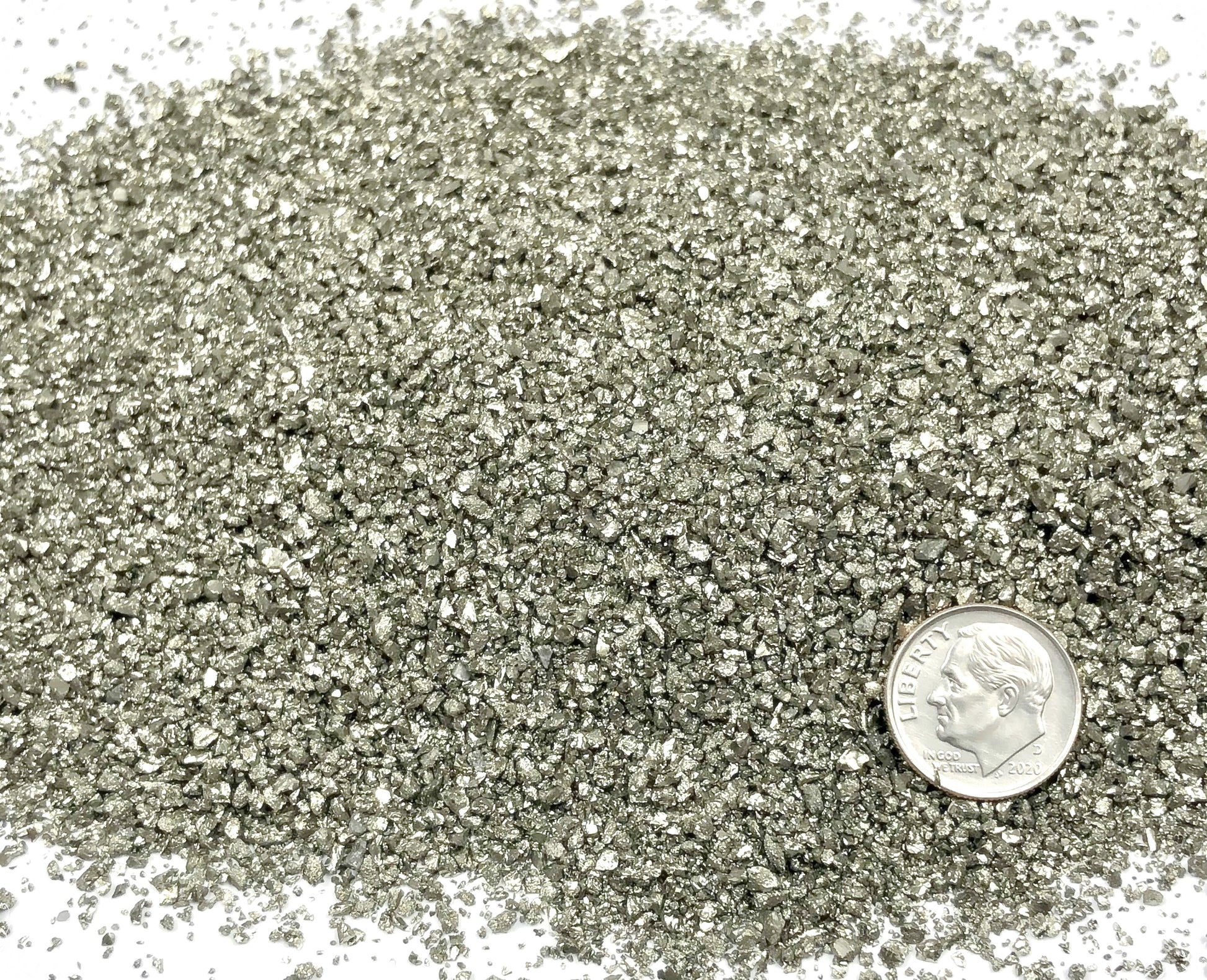 Crushed Silvery-Gold Cocada Pyrite Sand (Grade A) from Peru, Medium Sand (0.25mm-2mm)
