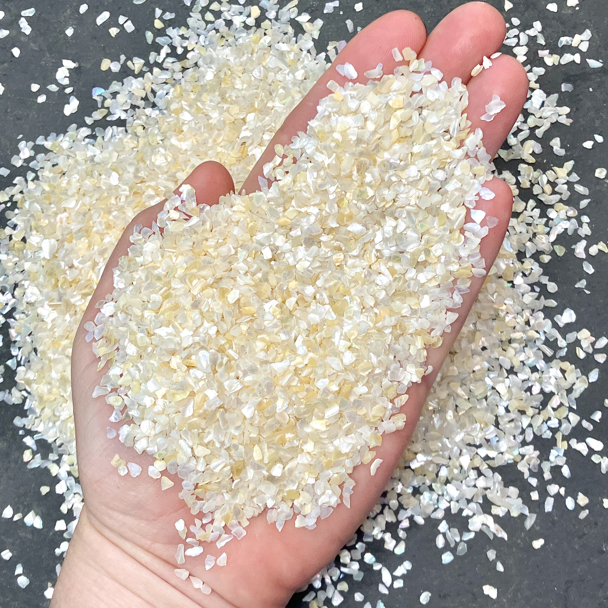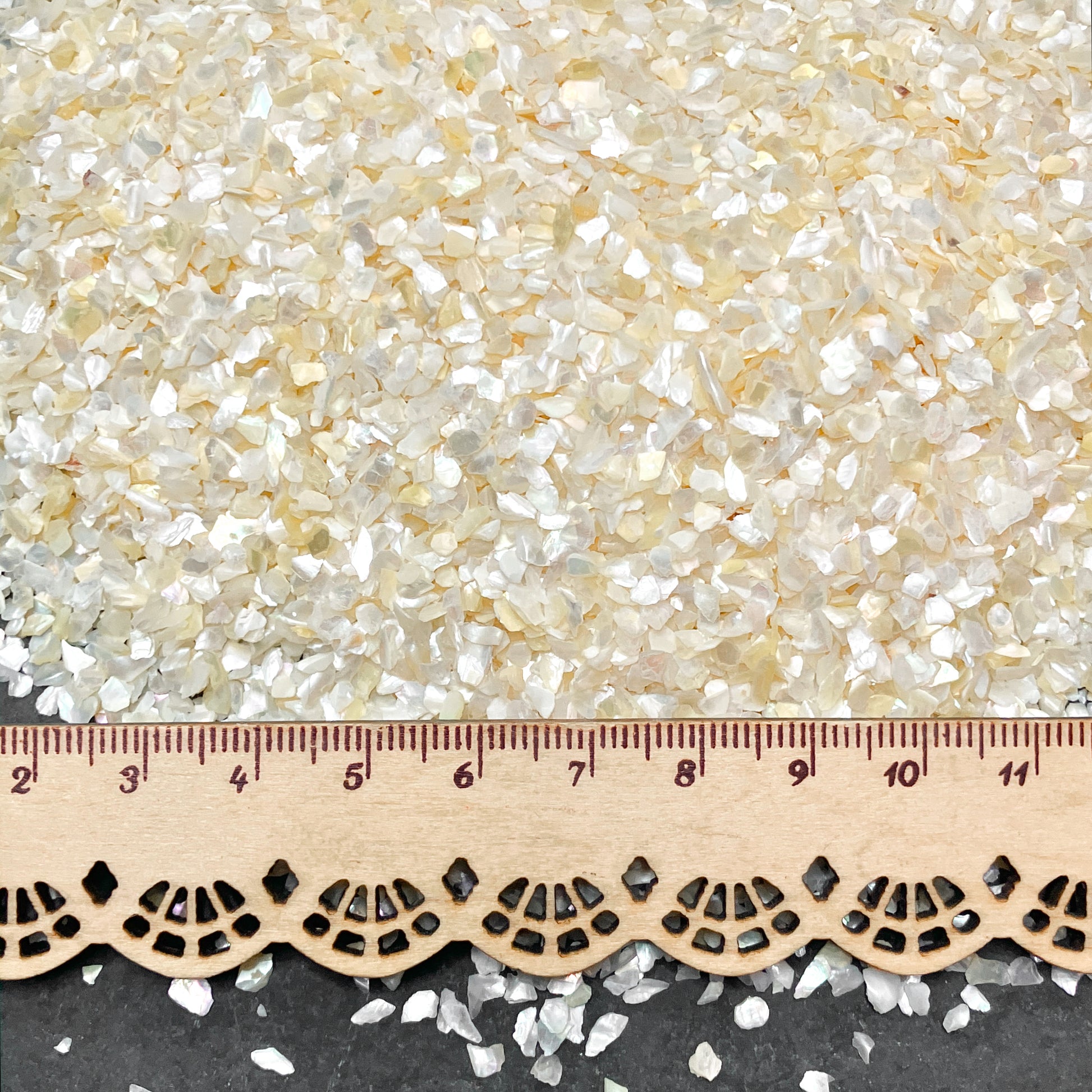 Crushed Creamy White Mother of Pearl Flakes (2mm-4mm) for Woodworking Inlay, Resin Art, Embellishments or Orgone Pyramids