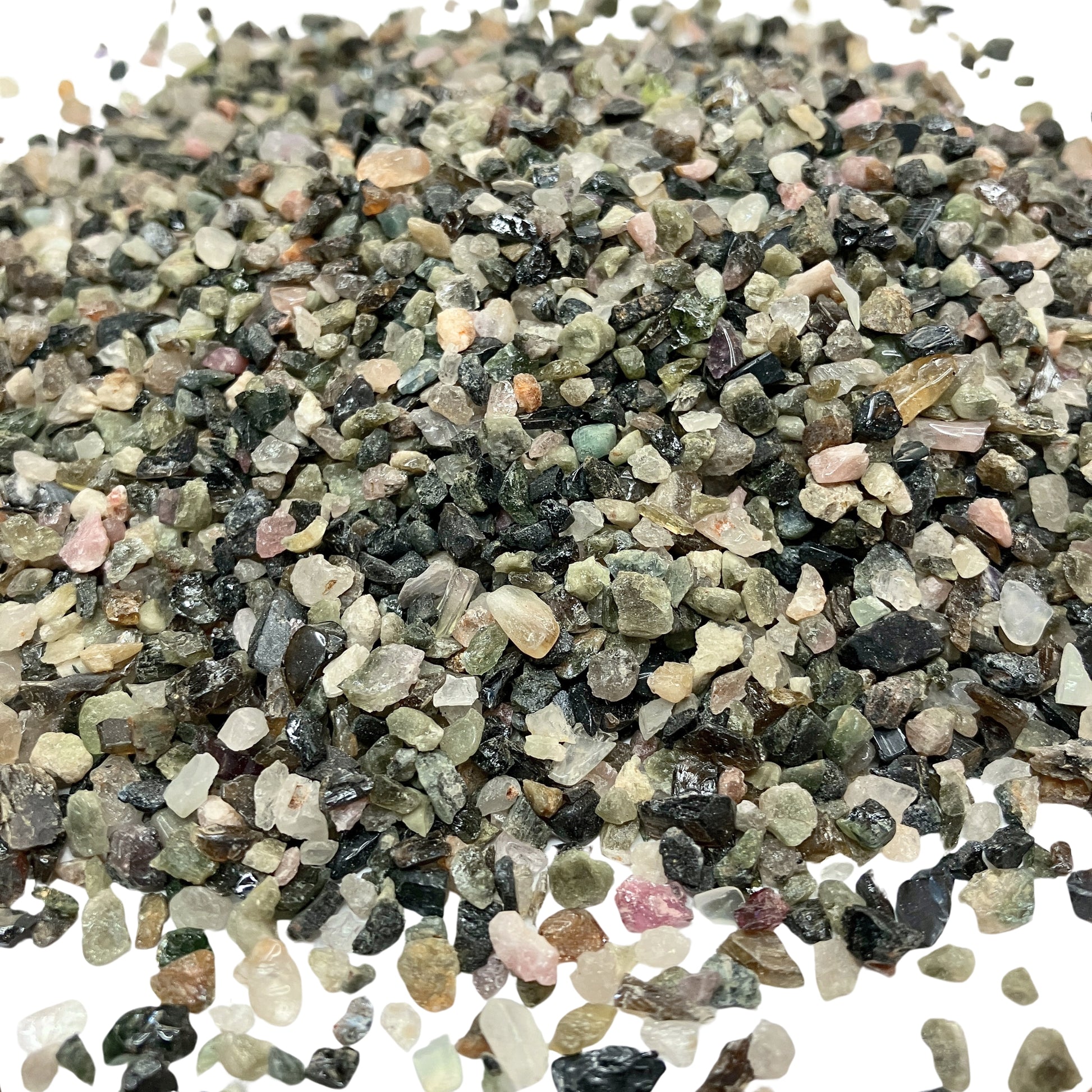 *CLOSEOUT* Crushed Mixed Tourmaline Chips from Brazil, Grade B, Pea-Sized Gravel (2mm-4mm) for Terrariums, Succulents, Resin Art, Embellishments or Orgone Pyramids