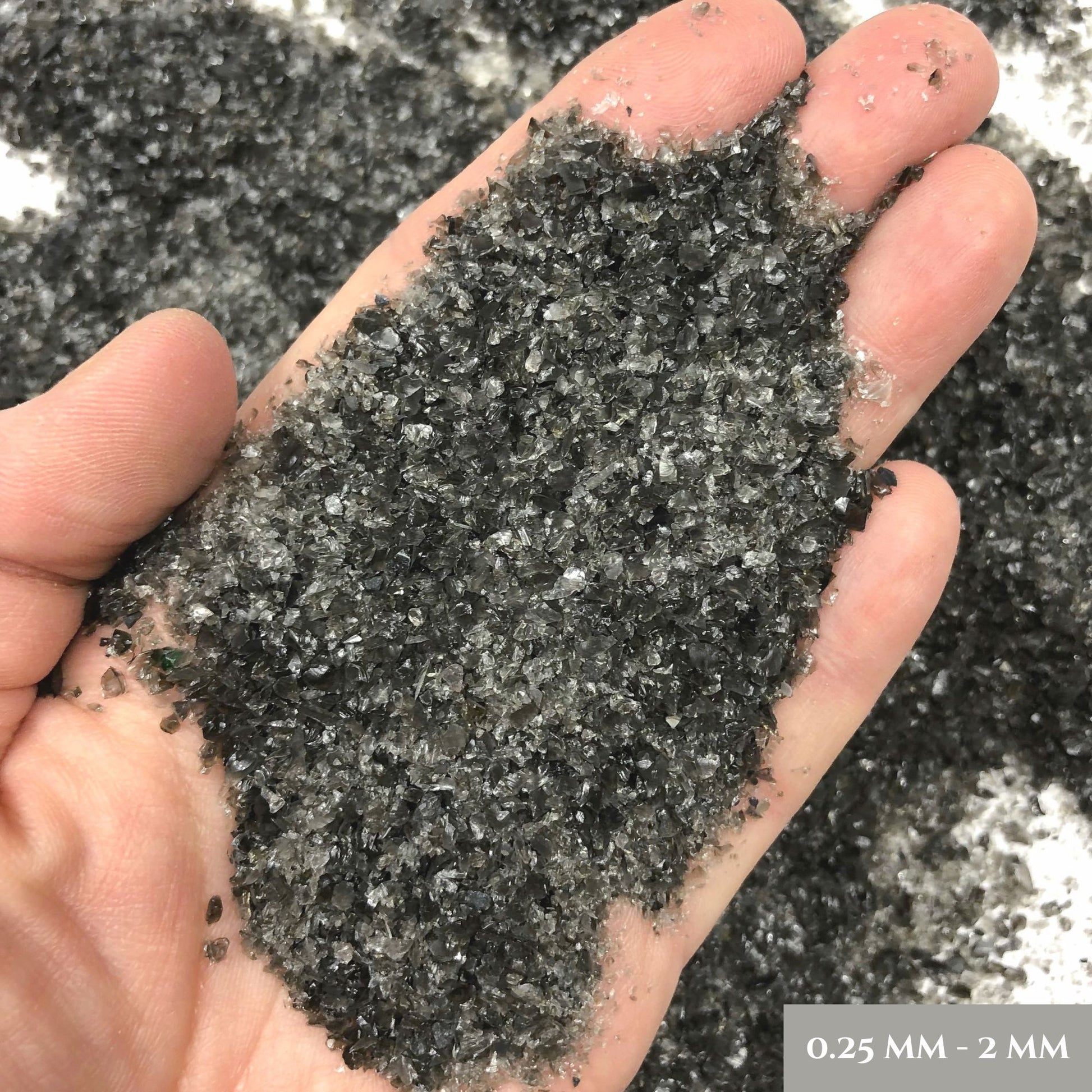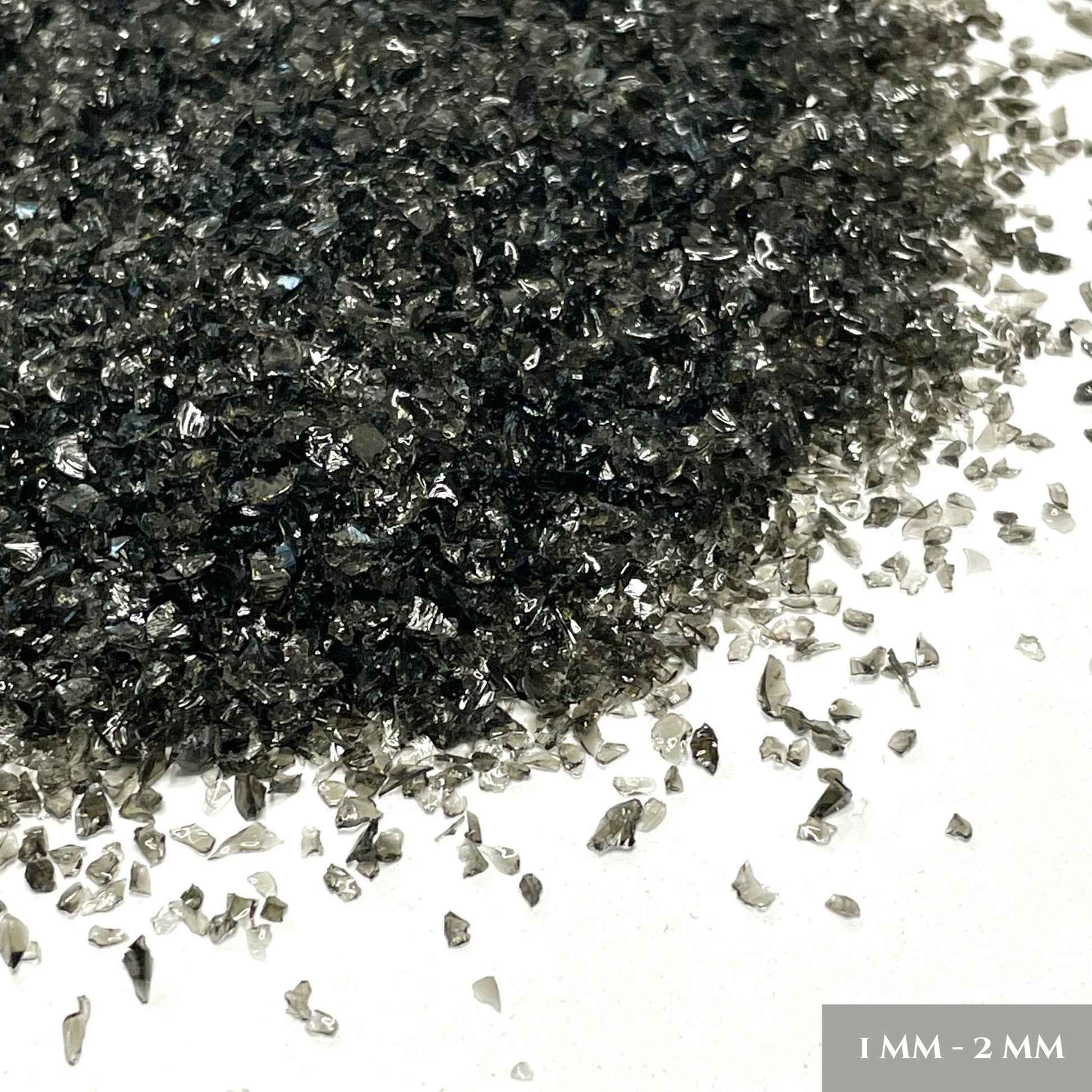 Our medium crushed material is considered to be sand sized, from very fine to coarse sand, and is available in three size variations: 1mm to 2mm, 0.25mm to 2mm, and 0.25mm to 1mm. Our sand-sized material is ideal for a wide range of creative projects, including woodworking inlays, memorial and resin jewelry, orgonite pyramids, ring inlay, resin molds, mosaics, terrariums, bezel cups, resin art, embellishments, and metaphysical projects.