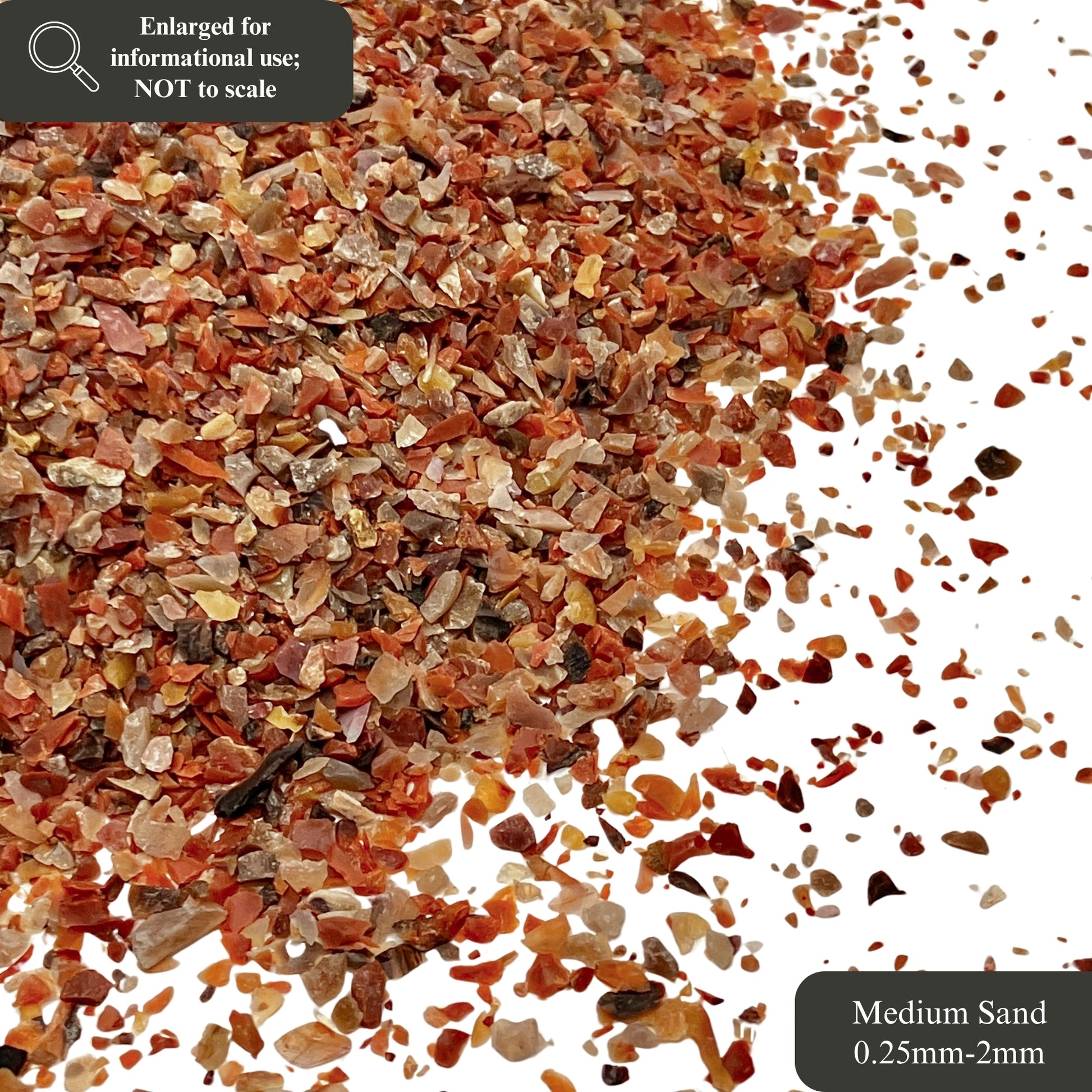 Our medium material is considered to be sand sized (very coarse sand to fine sand), ranging between 2 millimeters to 0.25 millimeters. Please see the corresponding sediment size chart.