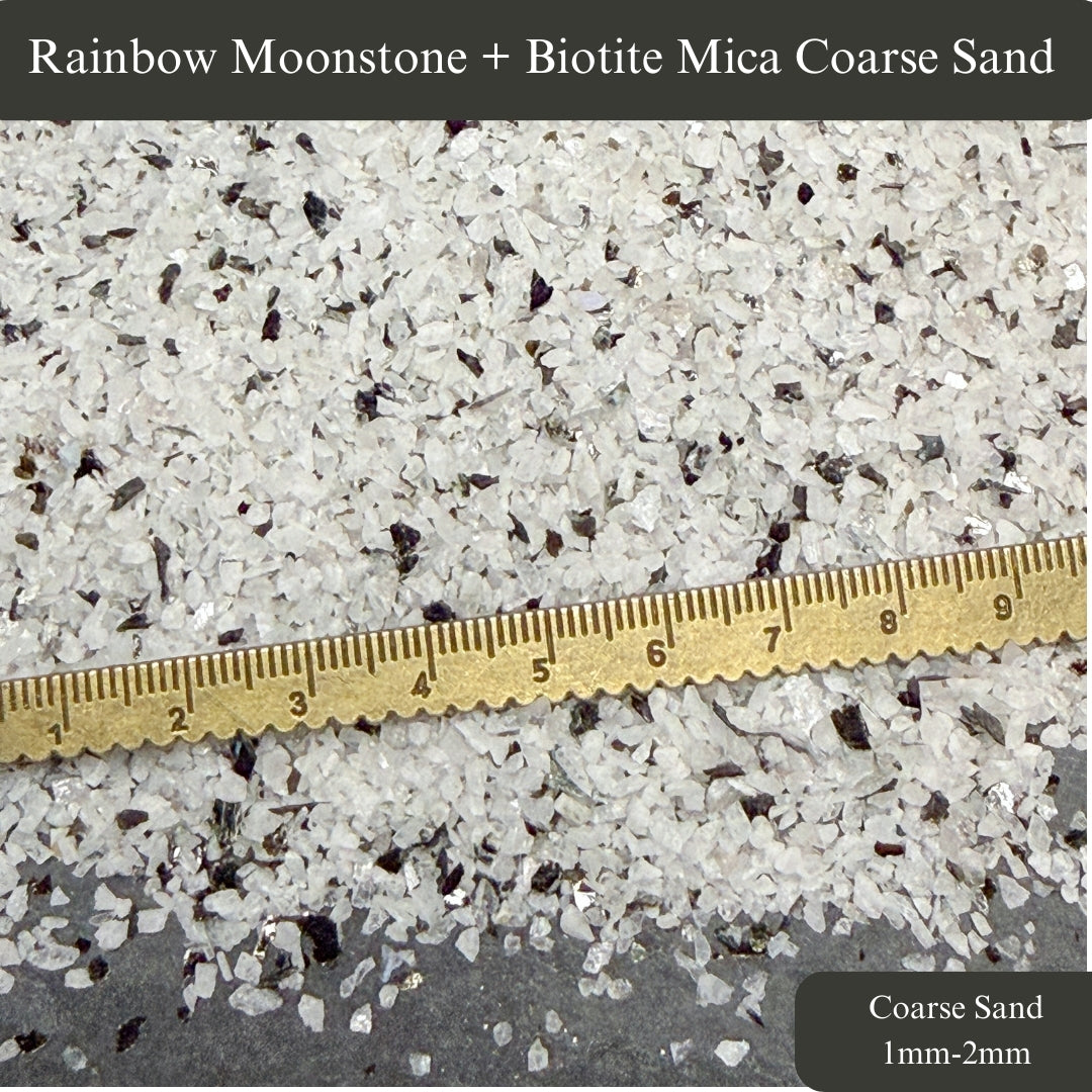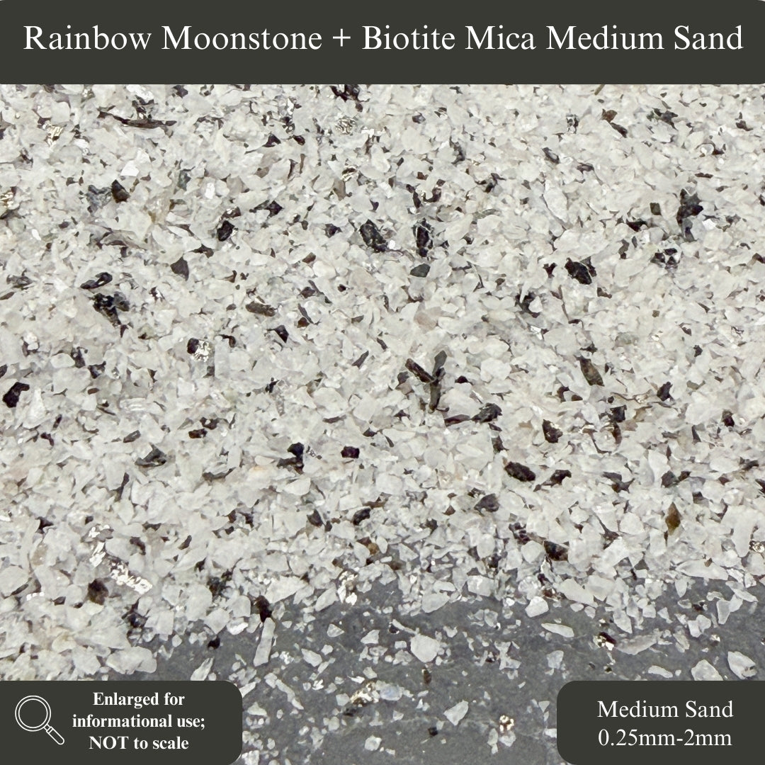 Crushed Rainbow Moonstone with Biotite Mica Sand from India, 3 Sand Sizes for Woodworking and Ring Inlay, Resin Art, Memorial Jewelry