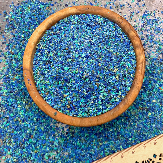 Crushed Shattuckite, Azurite, Malachite Chips from China, Small Batch, Pea-Sized Gravel (2mm-4mm) for Woodworking Inlay, Resin Art, Embellishments or Orgone Pyramids