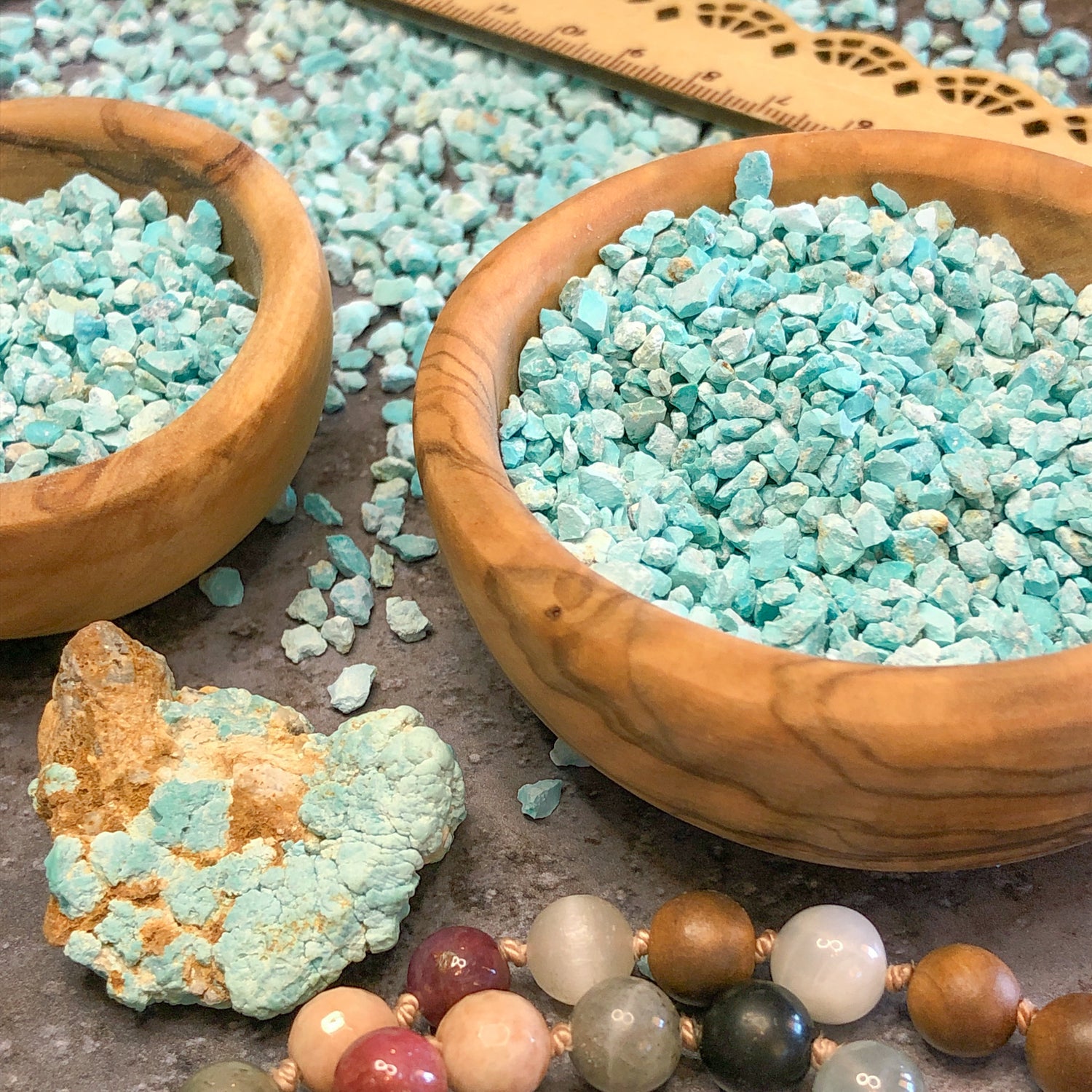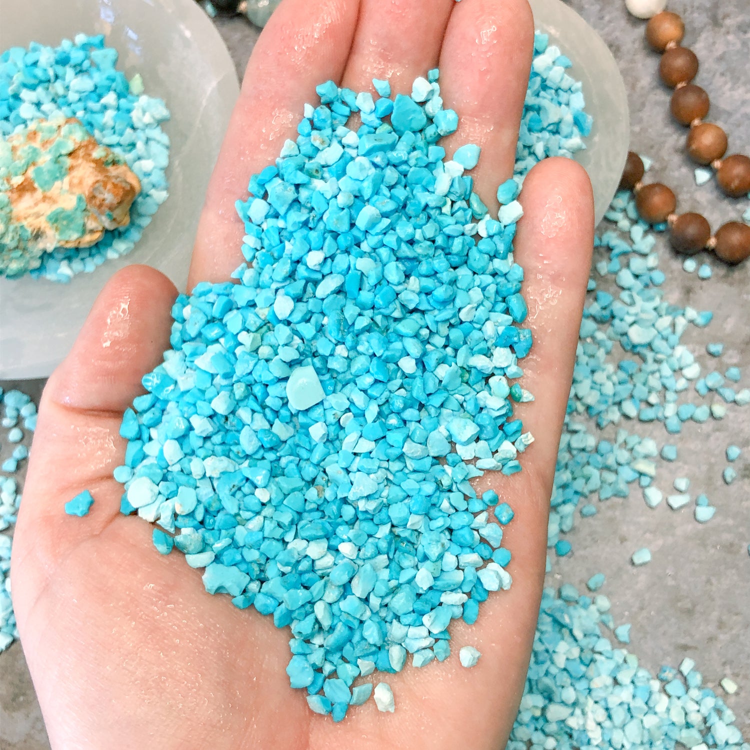 Our crushed minerals are not your average stone. They are top quality and are ready to use in your creative projects. The purity of our stones saves you time by providing you with consistent and clean material right out of the package, so you can get to creating the projects that you are passionate about. Artists use our crushed stone for jewelry, wood and bone inlay, resin art, and so much more. The possibilities are truly endless!